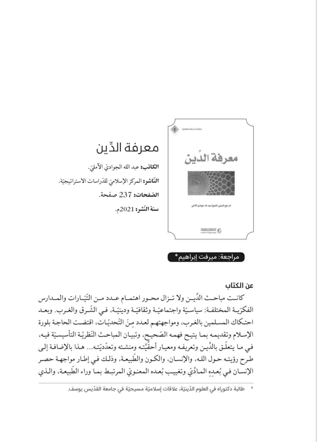 تتمثّل أهميّة الكتاب الذي نحن بصدد التّعريف عنه ضمن هذا السّياق، بالإضافة إلى مكانة كاتبه العلميّة، بما يُقدِّمه من مباحث نظريّة تأسيسيّة مهمّة مُتعلِّقة بالدِّين، والتي كانت ولا تزال مثار الجدل في الوسط الفكريّ في العالَمَيْن الغربيّ والإسلاميّ، هذا بالإضافة إلى مَا يُقدِّمه مِن إجابات عن الإشكاليّات والتّحدِّيّات المعاصرة.